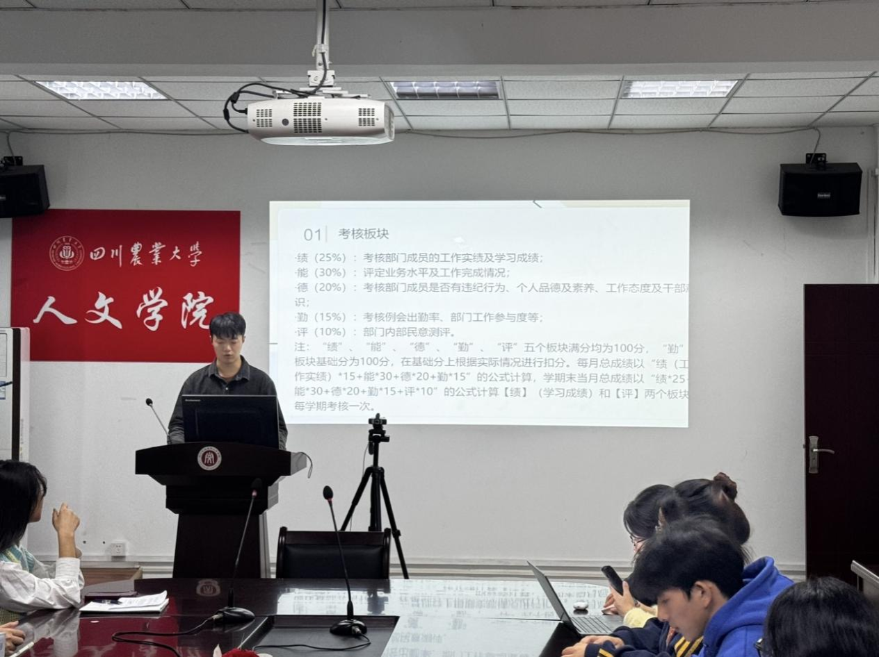 在部门成员考核条例方面,主讲人邓家昌从“技”“能”“德”“勤”“评”五个方面分别阐述了考核评分依据,鼓励部门成员全面发展。随后,他指出主要员工干部考核条例与例会考核条例旨在全面评估成员工作表现。在工作任务完成方面,邓家昌明确了质量与效率并重的标准,强调员工干部工作要尽量确保每一个环节精准无误;在团队协作方面,他强调各部门负责人需要积极配合团队成员,善于与部门成员沟通交流,分享有关经验;在例会参与方面,他强调各员工干部要积极在例会过程中贡献有价值的想法、认真倾听并做好有关记录。同时,为确保每一次例会都能达到预期效果,各位部门负责人需要提前做好充分准备,在例会过程中遵守例会纪律。