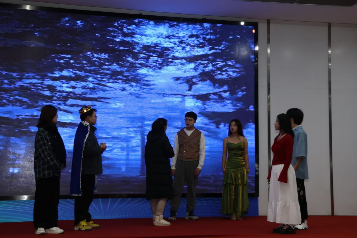 演出当晚,奇幻的森林氛围,瞬间将观众带入了莎翁笔下的那个充满魔法与爱情的仲夏夜世界。演员们凭借扎实的语言功底和出色的表演技巧,将剧中人物刻画得淋漓尽致。无论是赫米娅与拉山德之间坚贞不渝的爱情,还是仙王仙后之间的诙谐纠葛,以及那群工匠们带来的欢乐闹剧,都赢得了台下观众的掌声与欢笑。特别是在台词翻译方面,同学们巧妙地将古典英语与现代语言风格相结合,既反映了原著的文化内涵,又让当代观众能够理解剧情,充分展现了翻译专业的独特魅力与专业素养。