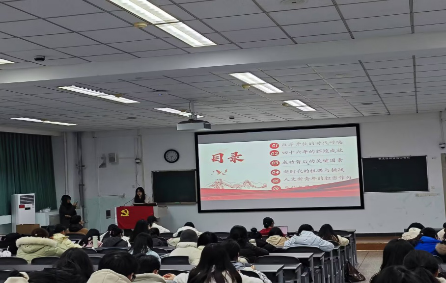 本期人文新青年分享交流会以“四十六年辉煌路,改革开放再出发”,由英语202405罗永仙展开分享。交流会伊始,罗永仙同学为同学们带来了精彩的分享。站在时代的交汇点,回顾改革开放以来的辉煌成就,她以简洁明快的方式,激昂慷慨地道出了这一路走来的机遇与挑战,深刻分析了成功背后关键因素,与过去遥相呼应,与未来继往开来。随后她以一段视频追溯过往,展望未来。在场的人文青年无不感叹激动,深刻体会到责任与担当的重要性。