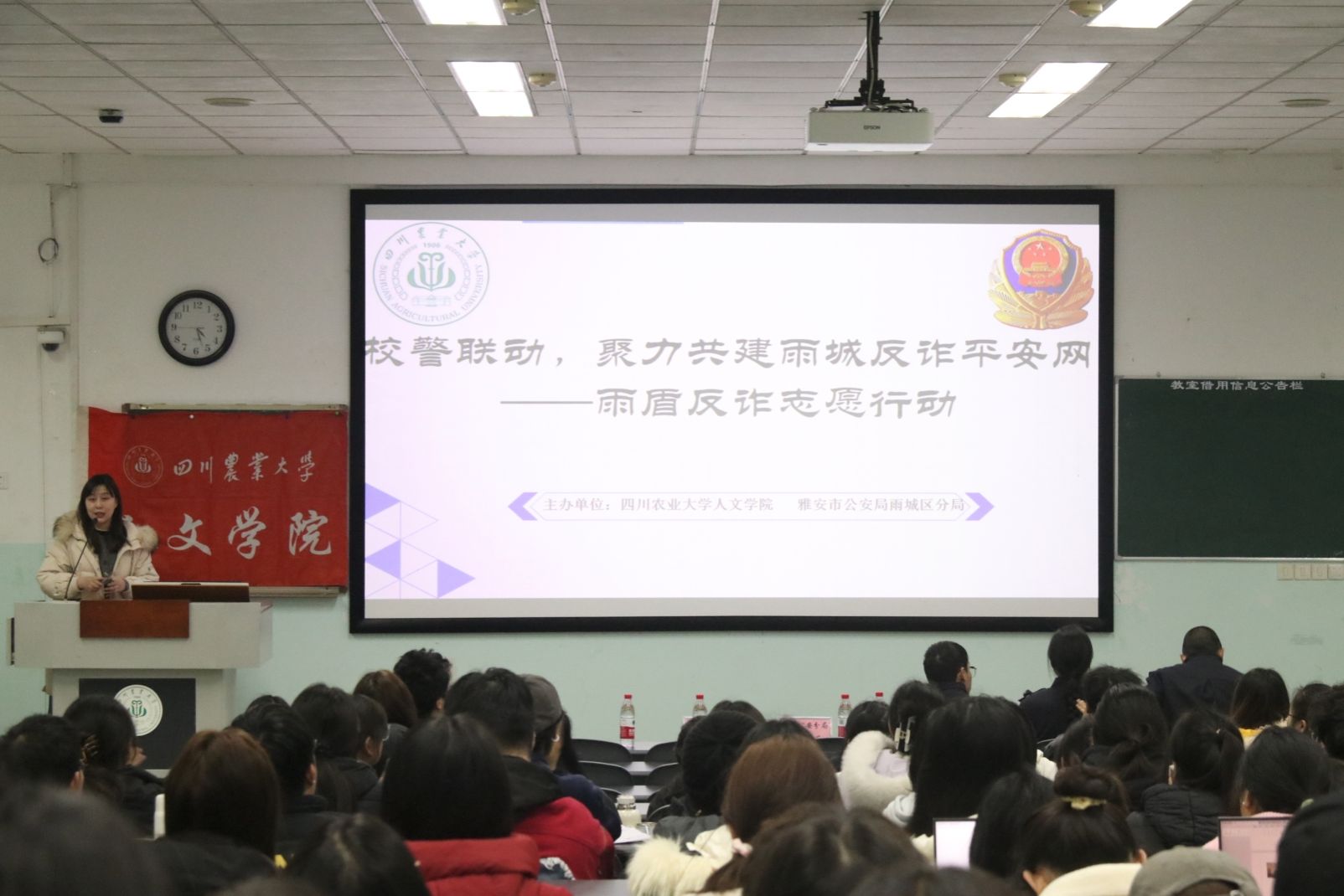 为提高社区群众的防诈骗意识,保护群众的财产安全和合法权益,3月18日,太阳成集团tyc234cc校警联动“雨盾”反诈专项讲座顺利开展。本次讲座由雅安市公安局雨城区分局反诈中心进行主讲,面向2023、2024级全体同学。