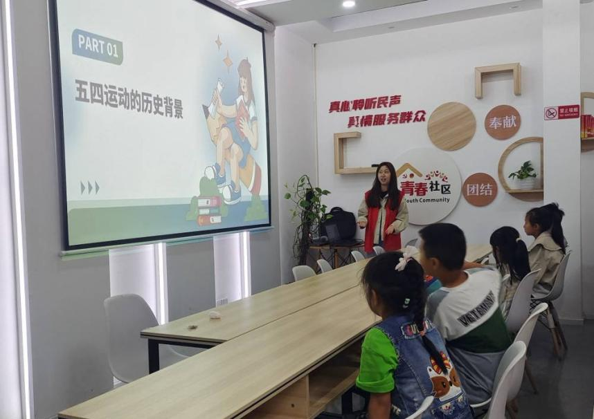 “青”心传承活动聚焦丰富多元的文化主题,为社区青少年搭建起亲近文化、传承传统的桥梁。活动期间,志愿者们紧扣多个特色主题,以别出心裁的形式为社区的小朋友们讲授课外文化。“五四”青年节当天,志愿者带领社区小朋友重温五四历史,讲述青年先驱们矢志不渝的奋斗故事。志愿者通过主题演讲、视频讲解、情景演绎的方式让小朋友们触摸五四精神的温度,用最贴近童心的方式传递精神力量,在孩子们心中播撒下“爱国、进步、民主、科学”的红色火种。