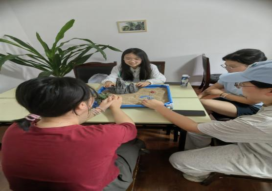 细触流沙,听见心声;安放小物,自信萌芽。6月7日上午,“自信沙语”活动于雅安校区第四办公楼三楼沙盘室开展,由黄青老师引导。在黄青老师的专业引导下,同学们通过指尖与沙粒的亲密接触,辅以空灵舒缓的音乐,感官得以细腻开启,敏锐觉察平日被忽视的内在情绪,逐步沉浸于深层的内心宁静。黄青老师引导同学们借助沙具在沙盘上进行意象呈现,将无形心绪化为有形表达。通过深度的自我探索与同伴间的真诚分享,同学们对自身情感世界与生活状态获得了更为深刻的体悟与理解。