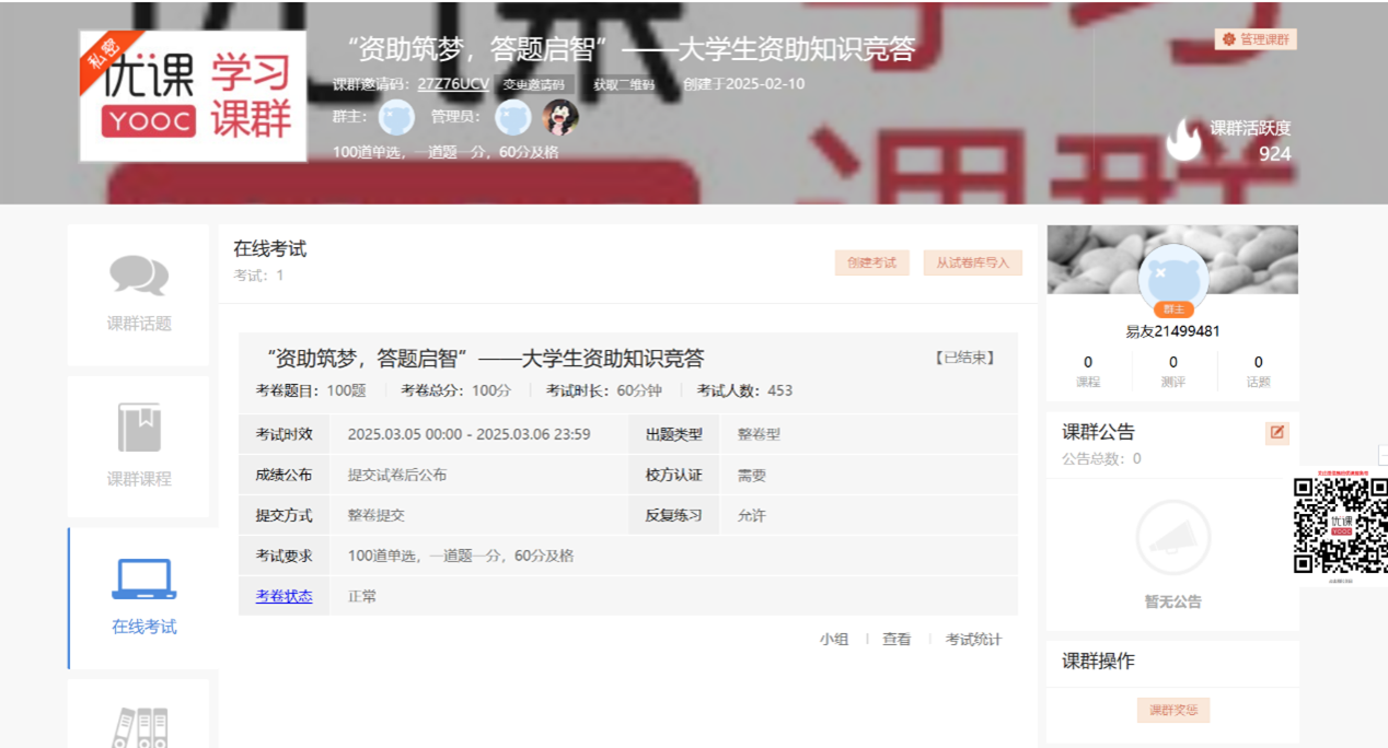 活动期间,参赛同学们加入答疑群,在群里获取易班答题课群码,加入易班课群报名并答题参与此次活动。活动结束后,工作人员及时收集易班答题情况,仔细整理符合加分条件同学的名单,并将加分表单及时上交至二课运营中心。