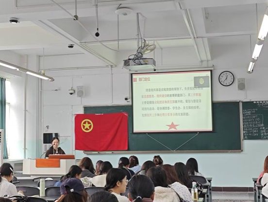 大会在全体齐唱团歌中拉开帷幕。组织部部长陈烨萍主持会议,首先介绍了部门基本职能,并就本学年上下两学期的团务工作重点作了详细解读。随后,会议围绕班团活动培训展开,陈烨萍从班团活动的含义与流程入手,系统讲解了前期准备、活动实施、材料提交及评优答辩等环节的具体要求。她特别强调,各班团组织须按规定时间节点完成材料的填写与提交,确保工作规范有序。