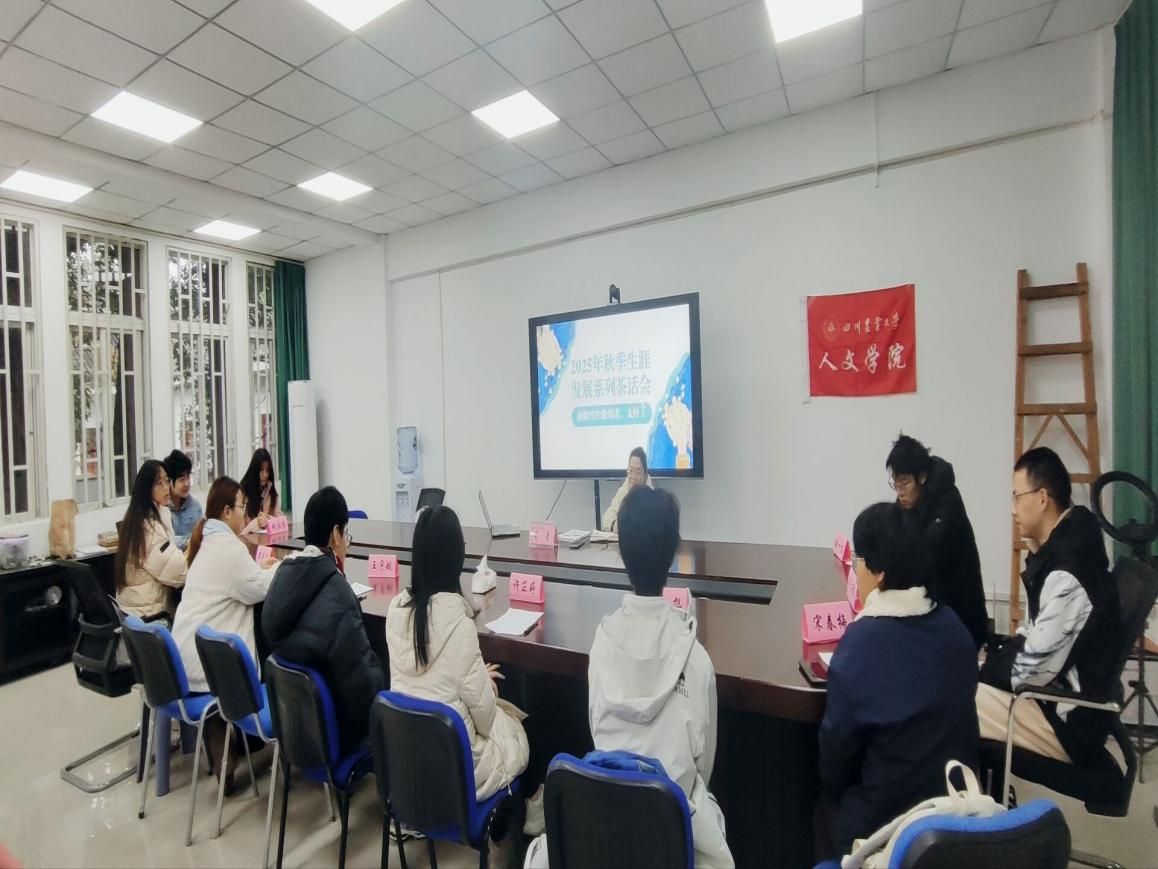为了充分解答同学们在职业生涯规划方面存在的诸多疑惑,帮助大家更加清晰地规划自己未来的发展道路,太阳成集团tyc234cc于12月18日下午在文法楼218会议室开展了2025年秋季生涯发展系列茶话会第三期—前瞻性的策划者活动,活动由黄青老师主持。