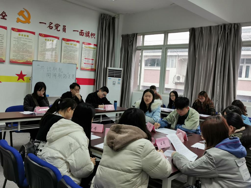 本次活动共设有两个环节,分为无领导小组讨论和职场知识问答两部分。无领导小组讨论环节旨在展现参赛者的逻辑思维和语言组织能力,参赛同学积极参与讨论,踊跃地发表自己的观点;职场知识问答环节意为考察同学们对职场知识的了解情况以及对突发情况的应变能力,同学们沉着冷静,侃侃而谈。赛后,主席团成员们对参赛同学进行点评和指导,使同学们受益良多。