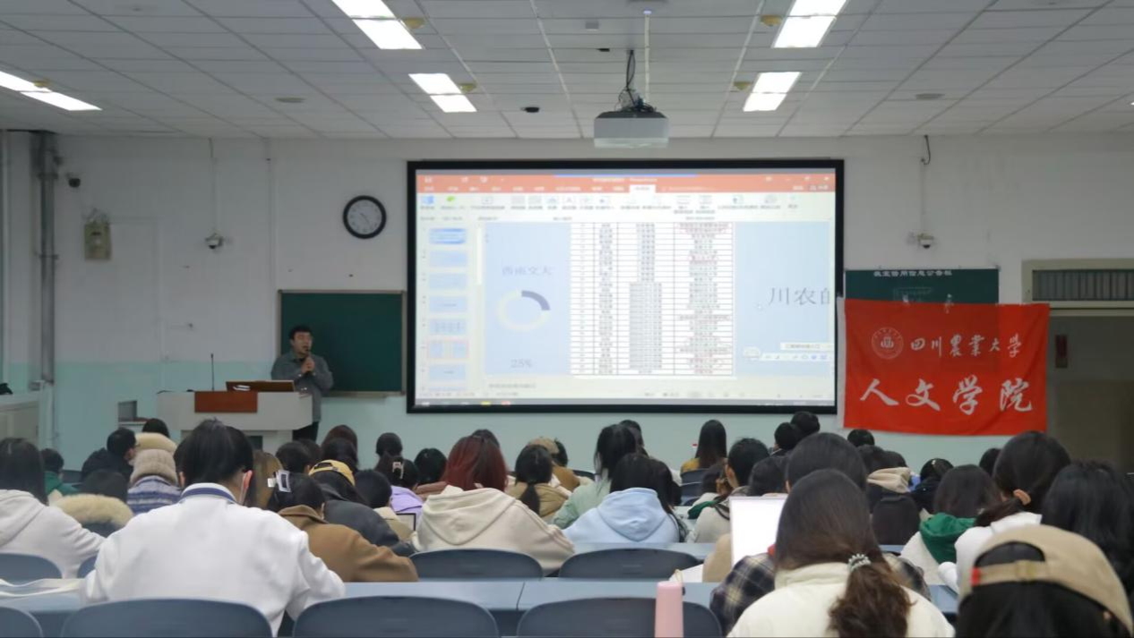 在当下考研形势方面,王泽晗详细介绍了全国考研形势和四川各高校的考研概况。在留学形势概况方面,王泽晗阐述了留学的意义、留学回国后的就业优势以及职工活情况。他强调:“出国读书的意义不在于你学到了什么,也不在于你明白了什么,而是在于你经历了什么。” 同时,他说明了留学所需的费用和留学的好处,以此来回答“普通家庭该不该、能不能留学”这一问题,从而打消了许多同学及其家长对于留学的顾虑。