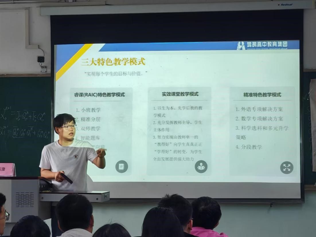 活动中,鸿鹄教育集团人力资源部招聘经理高澄作为主讲嘉宾,带来了丰富且专业的分享。高澄老师首先通过视频引入,介绍了鸿鹄教育集团的办学经验和三大特色教学模式等,深入剖析了当前教育行业的发展趋势,从宏观层面为同学们勾勒出教师职业的广阔前景,让同学们对未来的职业赛道有了清晰认知。