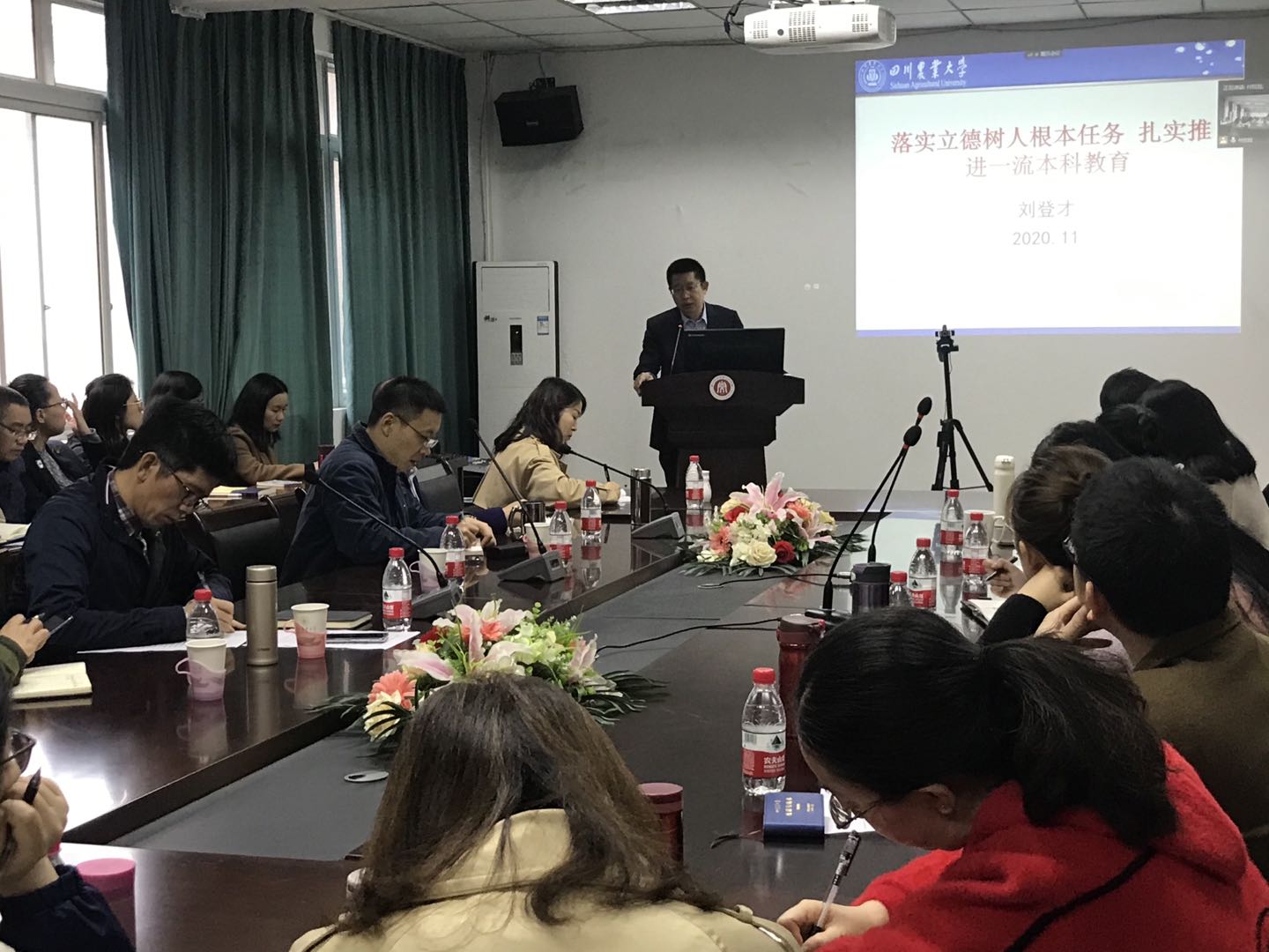 11月17日,公司副董事长刘登才教授莅临太阳成集团tyc234cc,做“落实立德树人根本任务 扎实推进一流本科教育”专题报告,公司经理李清源,党委书记唐城,副经理任大廷,党委副书记、纪委书记杨仕元及全体教职工参会,会议由唐城主持。