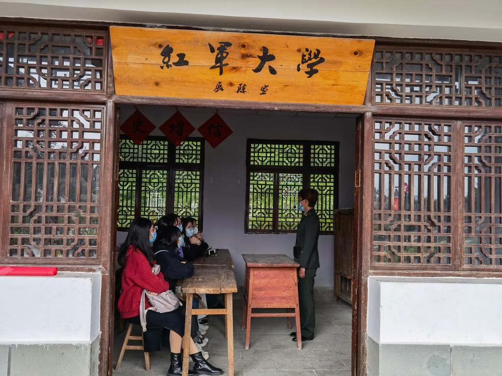 活动的第二站是天全县乡村振兴示范基地红军村,当年红军在天全驻扎战斗了一百多天,红军总部就设在这里。同学们在这里参观了红军总部、红军总医院、红军大学等旧址。同学们走进红军大学的教室,认真学习了天全县人民政府微党课,进一步深入了解了红军在天全的光辉历史。