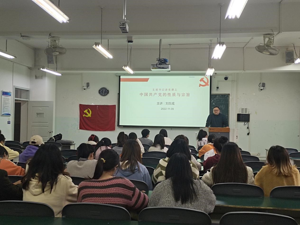 英语员工党支部书记刘生成结合党章修改为各位党员讲解了有关中国共产党的性质和宗旨的内容,对党员的初心与使命进行全面地、深入浅出地讲授。在党课上,刘生成同志多方面展开解读,让大家清楚认识到党跳出历史周期律的两个答案,更加明确一切为了群众,一切依靠群众,从群众中来,到群众中去的工作路线,更加坚定了各位党员入党的初心。加深了支部各位党员对党的基本理论和基本知识的理解,促使支部党员保持先进性,锤炼其党性修养。