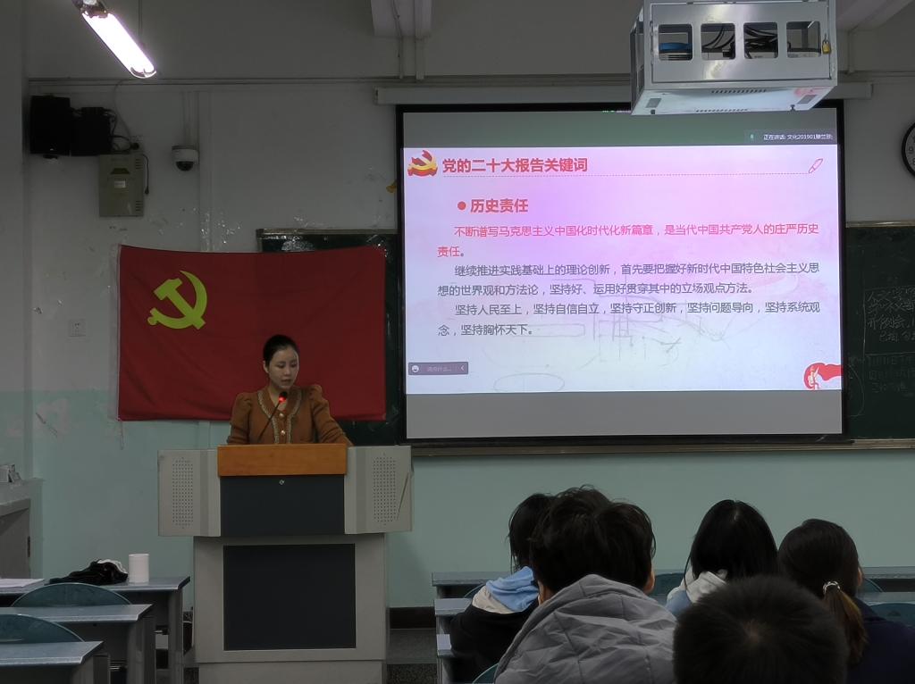 行政管理员工党支部书记付婷婷结合本支部党员同志自身特点,设计本次党课的内容。付婷婷同志向支部党员同志提出了学习贯彻党的二十大精神的相应要求,倡导党员同志们切实做到“五个牢牢把握”,牢记“三个务必”,全面学习、全面掌握、全面落实,努力成为一名政治上更成熟、学业上更优秀、工作中更主动、生活中更阳光的员工党员,积极向优秀共产党员看齐,发挥党员同志的先锋模范作用,争取成为对社会有价值、有贡献的合格党员。