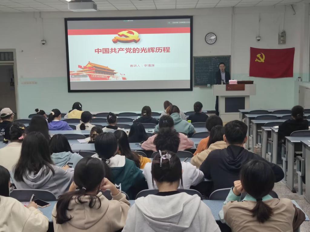 “中国共产党第二十次全国代表大会,是在全党全国各族人民迈上全面建设社会主义现代化国家新征程、向第二个百年奋斗目标进军的关键时刻召开的一次十分重要的大会。习近平总书记的报告指明了党和国家事业的前进方向,是中国共产党团结带领全国各族人民在新时代新征程坚持和发展中国特色社会主义的政治宣言和行动纲领。”李清源从中国共产党第二十次全国代表大会召开引入,回顾了中国共产党的光辉历程,讲解了学习党史的重要意义。要求同学们要通过学习党的奋斗历程和伟大成就,进一步明确方向,用党的光荣传统和优良作风坚定信念、凝聚力量,用党的实践创造和历史经验启迪智慧、砥砺品格,弘扬伟大建党精神,为全面建设社会主义现代化国家、全面推进中华民族伟大复兴而努力奋斗。