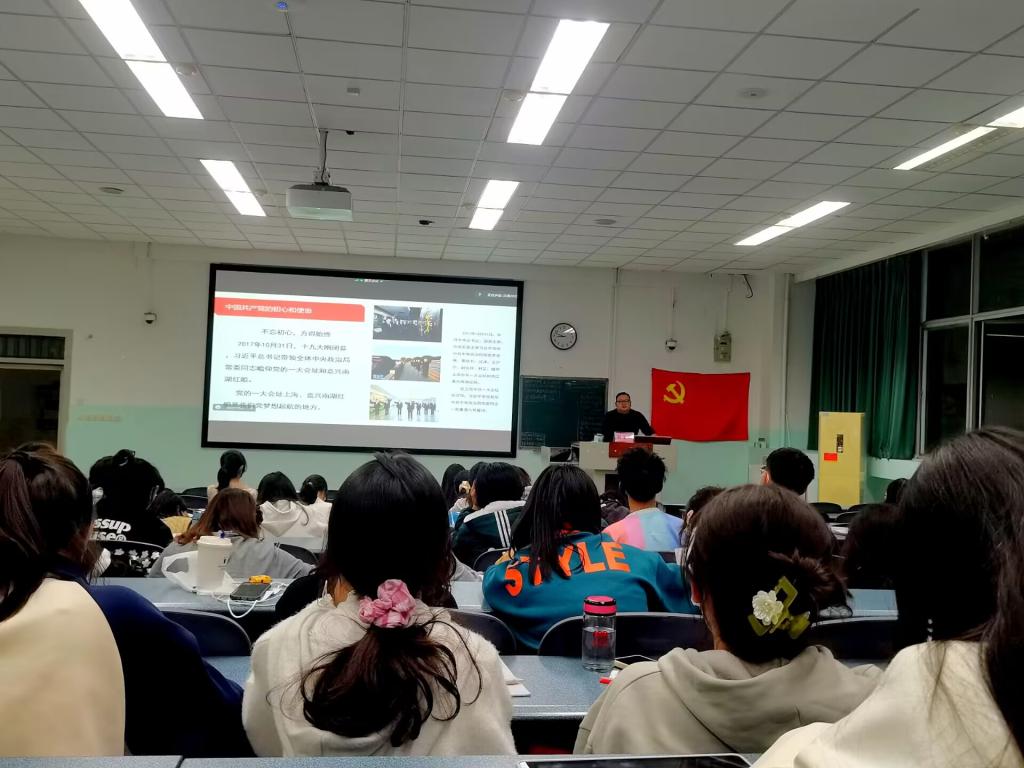 刘生成以“中国共产党的性质是什么?为切入点与几位学员进行互动引入课堂。中国共产党是中国工人阶级的先锋队,同时是中国人民和中华民族的先锋队,是中国特色社会主义事业的领导核心,代表中国先进生产力的发展要求,代表中国先进文化的前进方向,代表中国最广大人民的根本利益。中国共产党的最高理想和最终目标是实现共产主义。他以此为基础,分别阐述了两个先锋队、领导核心、三个代表、最高理想和最终目标的深刻内涵同时结合中国高效统筹疫情防控和经济社会发展的事例阐述了中国共产党人的初心和使命,就是为中国人民谋幸福,为中华民族谋复兴。希望同学们牢记初心和使命踔厉奋发,不断拼搏,在全面建设社会主义现代化国家新征程中充分彰显新一代青年风采。