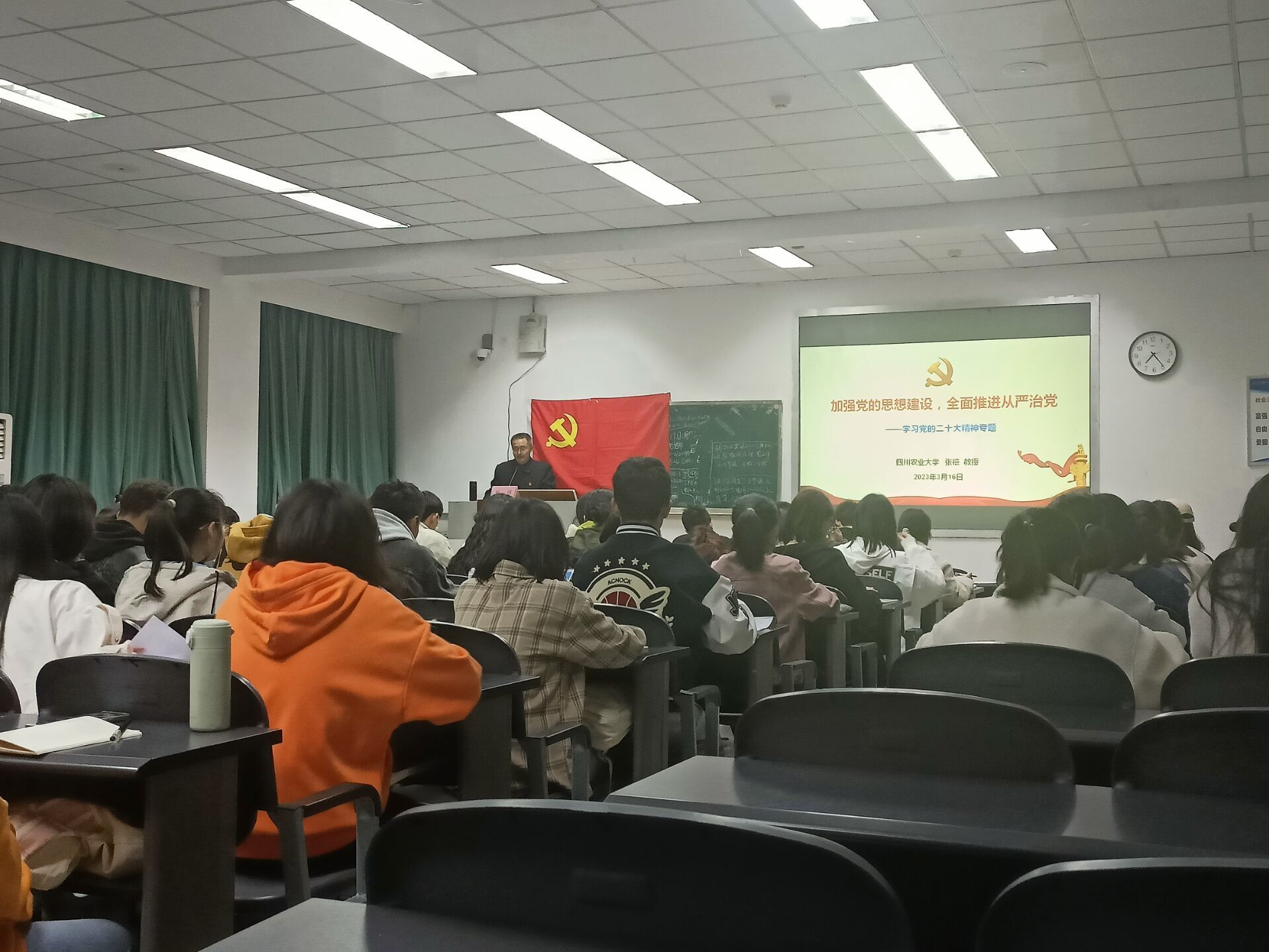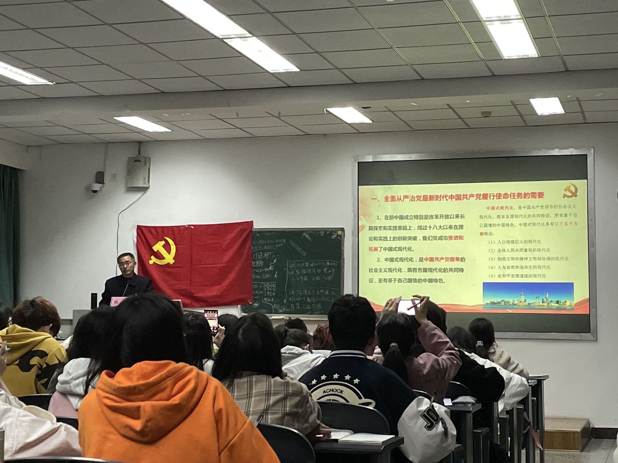 张禧教授讲到,加强党的思想建设是中国共产党的优良传统,全面从严治党是新时代党建理论的重要创新。他从经验、使命、实施三个方面解读了全面从严治党是新时代中国共产党履行使命任务的需要,经过党的十八大以来在理论和实践上的创新突破,中国共产党党成功推进和拓展了中国式现代化。他强调,同学们需清醒认识新时代党的建设面临的形势,党的自我革命永远在路上。他要求,同学们必须做到对照党的政治建设要求,坚定政治立场;对照党的思想建设要求,坚定理想信念;对照党的组织建设要求,坚定四个自信;对照党的作风建设要求,坚持党的宗旨。