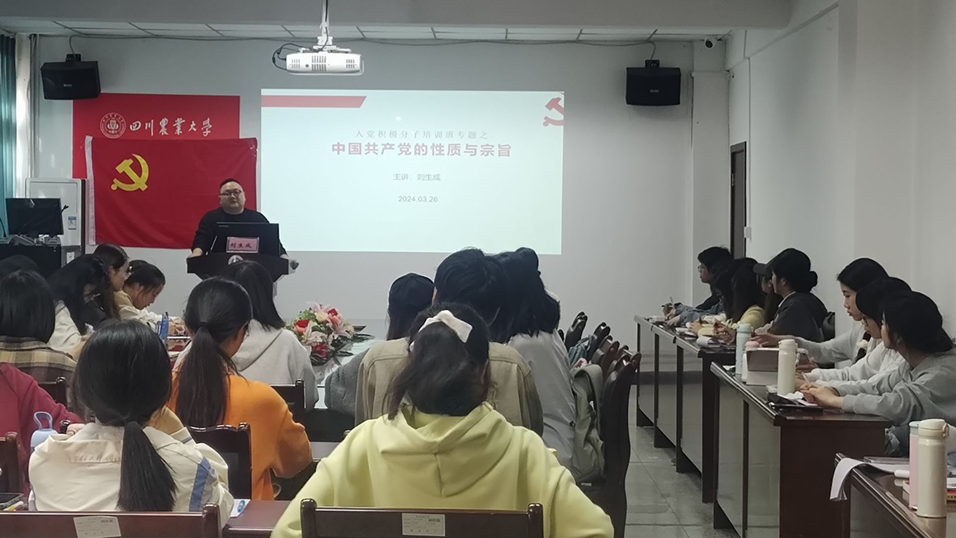 3月29日16:20,公司党校第96期第六讲在文法楼212会议室顺利开展。公司党委办公室主任、团委书记刘生成作《中国共产党的性质、宗旨和组织原则》《中国共产党党员条件和入党的基本程序》主题讲座。