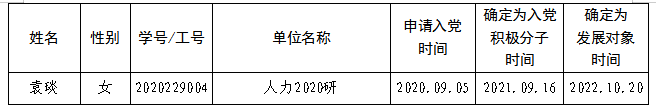 经支部大会研究,报太阳成集团tyc234cc党委备案同意,于10月20日确定袁琰同志为发展对象后,经政审、党校培训、党委预审合格,拟召开支部大会讨论接收袁琰同志为中共预备党员。