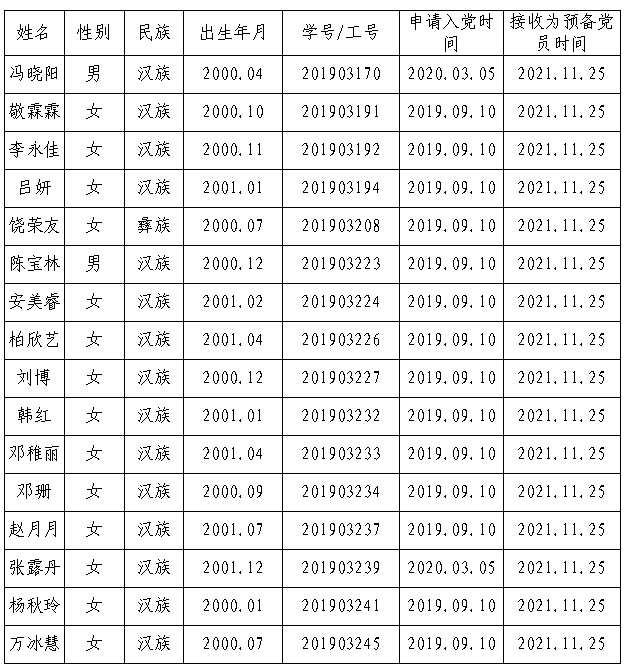 在听取党员、群众意见的基础上,经支部大会审查,拟将冯晓阳等16位同志转为中共正式党员(名单见附件),并于近期召开支部大会讨论其转正问题。根据发展党员工作有关要求,现将其基本情况予以公示。