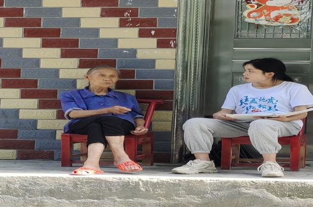 图为团队成员采访村民庞孝美 张茂芳/摄