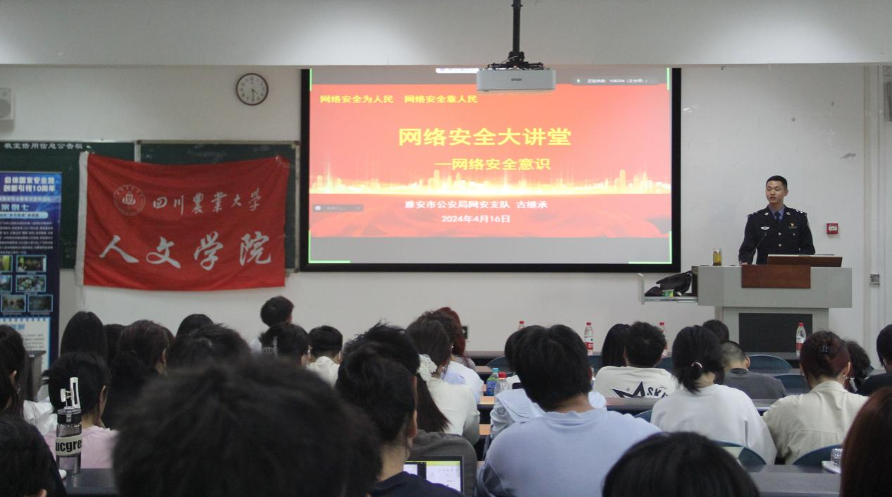 4月16日16:20,公司开展“共筑国安长城,守护共同权益”主题讲座。活动面向雅安校区全体员工,共计千余人成功参与。活动邀请到了雅安市雨城区公安局网安支队和反诈中心的警察同志,为同学们讲解国家安全、网络安全以及谨防诈骗的相关知识。来自网安支队的古警官主要从网络安全知识、法律法规政策、网络安全形势三个方面,结合当下热点话题,引导同学们进一步明确自身维护国家安全的义务;来自反诈中心的李警官则通过联系实际案例,向同学们讲述了当前新型诈骗的类型与危害,强调要进一步增强反诈意识,并号召同学们带动身边人共同学习反诈知识,提高防诈骗意识和能力。