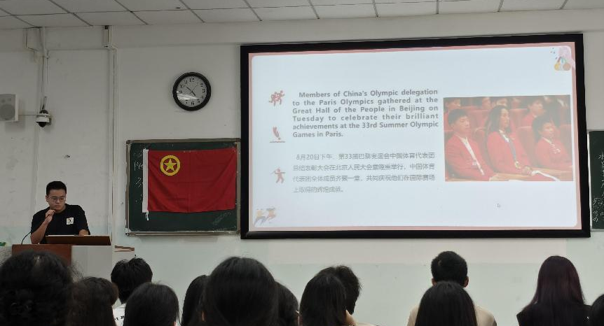 英语202303班杨昌然进行了一则青春实干新闻英语播报,激励同学们用青春的智慧与汗水为建设现代化强国贡献力量,展现新时代青年的担当。