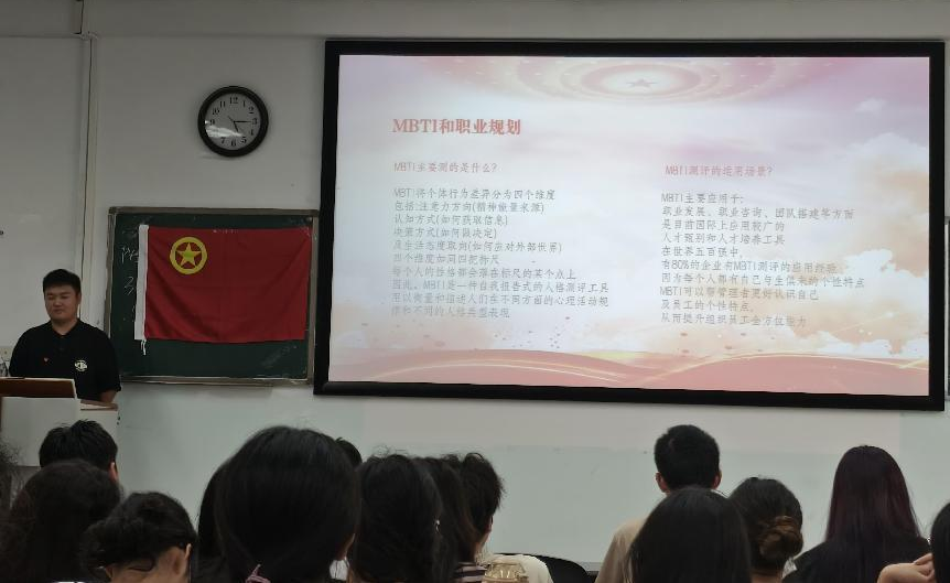活动组织同学们参与MBTI职业性格测试,并邀请同学们进行现场分享,帮助同学们认识自我、了解职场,科学规划个人发展道路,为步入社会做好准备。