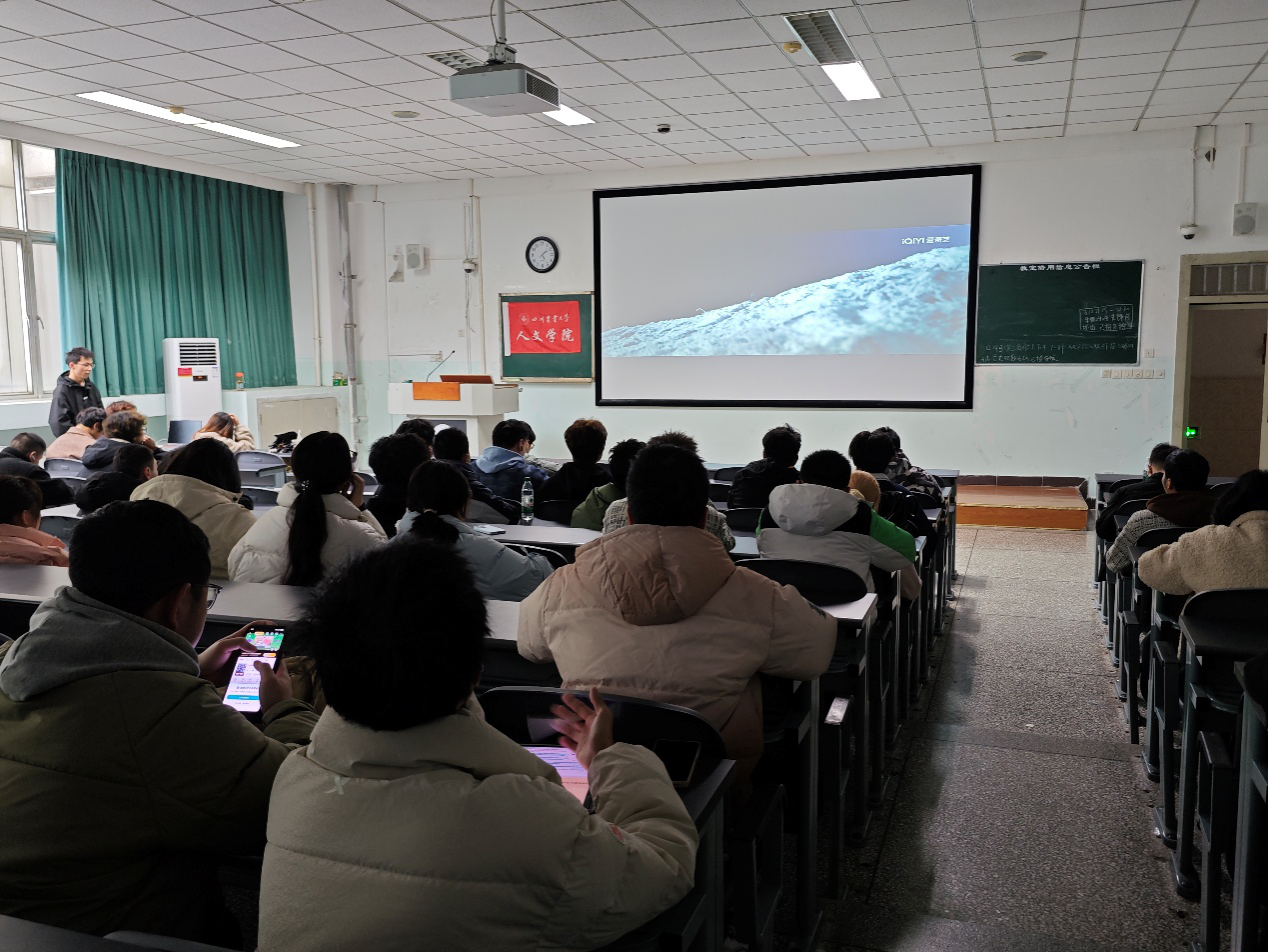 活动当日,同学们按时抵达活动地点。到场后,主持人贾晓帅引导大家有序签到并就座,随后介绍了本次播放的电影名称---《长津湖之水门桥》。随着电影开场,现场逐渐安静下来,同学们全神贯注地观看影片。在精彩的剧情中,大家仿佛穿越时空,回到了那段波澜壮阔的岁月,深刻感受到先辈们坚定的信念与无私奉献的精神,沉浸在影片所营造的历史氛围里。