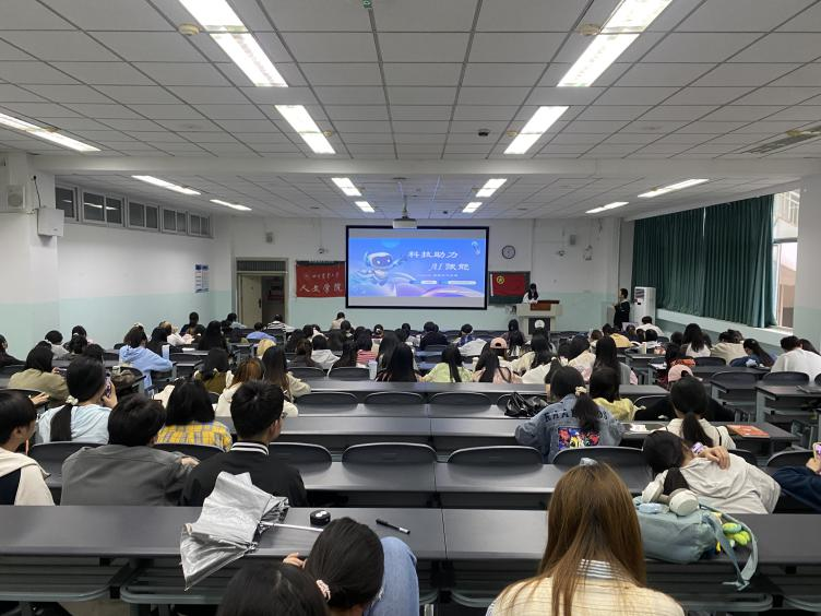 接着,王渝鹃同学进行“科技助力,AI赋能”主题宣讲,他分享了自己利用deepseek翻译优化实践的经验,从认识文本需求、提供背景受众、人工校对三方面,带来实用的科技知识。周芝好同学则进行阅读分享,推荐《读懂新质生产力》等书籍,鼓励同学们以阅读提升素养、担当责任。
