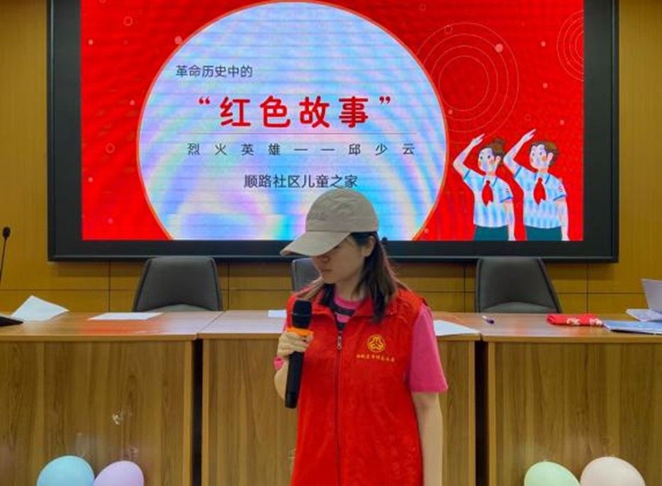 红色故事润初心。7月7日上午,社区活动室里暖意融融。团队主讲人谯宇率先为孩子们带来“烈火英雄邱少云”的主题红色课堂。考虑到员工们年龄普遍较低,所以在课堂上她往往使用朴实的语言还原历史细节,从邱少云潜伏阵地的紧张氛围到烈火焚身时的坚毅不动。在她的口下,一个个鲜活片段生动地展现在这些稚嫩的孩子们眼前。