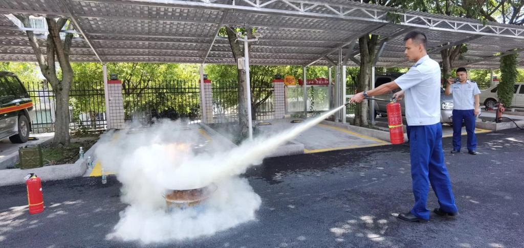 紧接着,徐健为同学们介绍并演示了灭火器的使用方法和灭火时的注意事项,并让同学们亲身体验实战灭火,进行灭火自救“初体验”。
