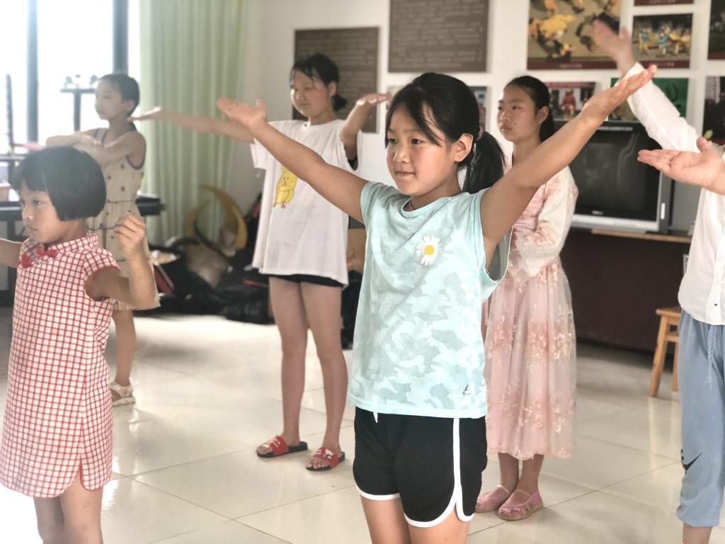 下午随着上课铃声响起,小朋友在团队成员的带领下迅速地进入训练厅排队站好等待“新老师们”。理论与实践相结合的安排,让小朋友始终保持对课程的新鲜感与满满活力。团队成员选取了耳熟能详的由《弟子规》改编而来的舞蹈作为教授内容,整个下午,除去休息时间外,小朋友都在认真努力地学习舞蹈。课程结束时,他们都能够完整地跳完《弟子规》改编的舞蹈了。