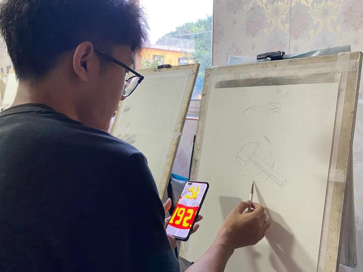 为使党的光辉更加深入人心,来自视觉传达专业的团队成员特地组织员工们开展了一次党徽绘画课程,并与员工们分享了党徽的来历以及相关故事。
