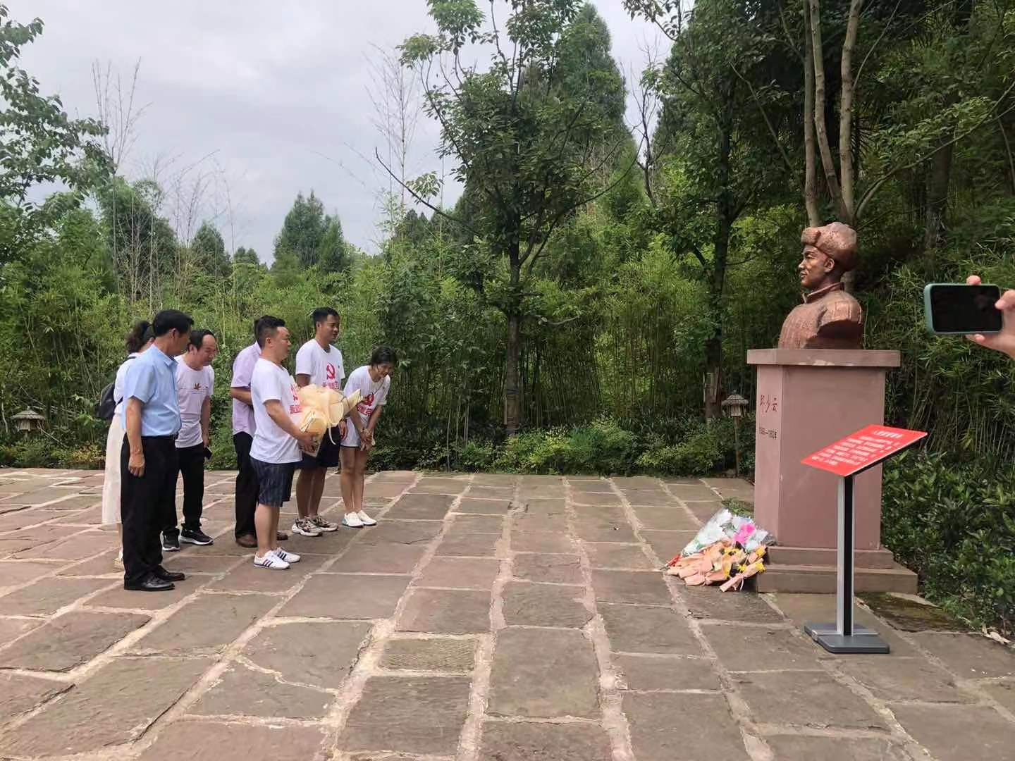 参观结束,成员们于故居旁的邱少云烈士雕像前,诚挚鞠躬并献上一束花,以表达团队对他的敬意以及对所有革命先烈的敬意。