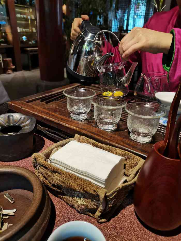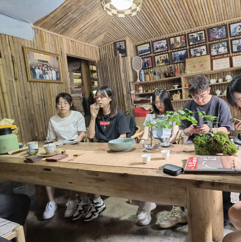 在品茶的过程中,队员们向茶艺师们推荐了产自四川雅安的蒙顶山茶,并邀请茶师们品尝,一番交谈之后队员们留下来了团队的联系方式,约定若茶楼有需要可通过团队预订茶叶并礼貌道别。