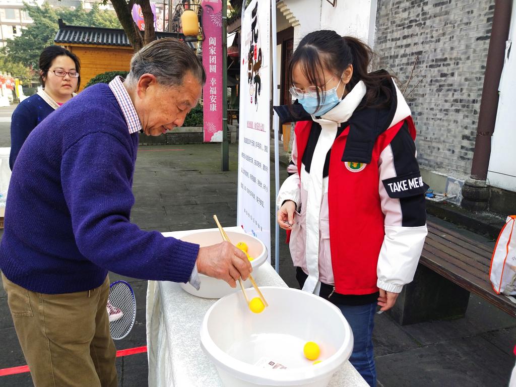 游园游戏是本次盛会重要的活动之一,也是团队成员主要负责的工作。到达现场后,成员们迅速更换着装,做好分工,就着微弱的晨光搬运物资、布置场地。客流量逐渐增多,游客们参与游戏的热情逐渐高涨。成员们有条不紊地向游客讲解游戏规则、组织游戏、维持秩序、解答疑惑、发放奖品。