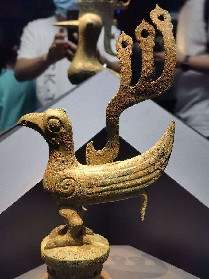 在三星堆文明中,神鸟作为其文化符号在通天神树,青铜饰件以及人首鸟身青铜像都有所体现,深刻体现出神鸟崇拜也正是古蜀先民诸神崇拜中的主崇拜。