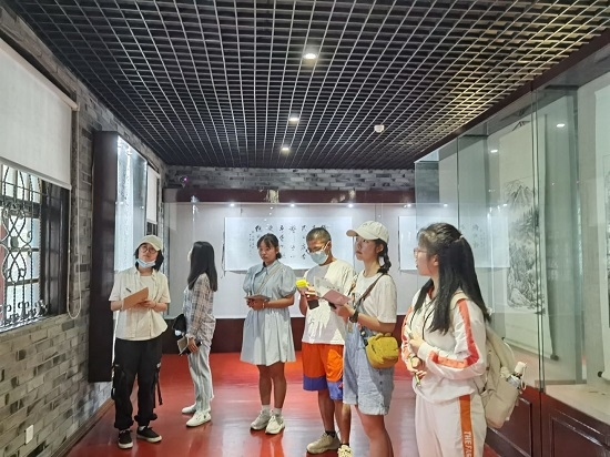 7月16日上午,团队成员通力协作,通过电子书刊查阅与纸质材料阅读相结合的方式做好前期的资料搜集。下午14时,成员们准时到达博物馆,并参观博物馆。参观过程中,团队成员结合文字、图片和实物等资料详细了解了雅安本地历史故事和文化传统。经过学习,团队不仅深刻认识到传承红色血脉、承担历史使命、振兴乡村教育的责任,而且从博物馆文史资源的传播经历中总结出了值得借鉴到英语乡村教育的经验:一是要抓住受众眼球,在乡村教学中突出员工的主体地位,从员工视角出发,思考乡村教学的方式方法;二是可以将雅安当地文化融入到乡村教学中,教授给员工们红色文化、乡村建设相关的英语知识。每到一处,团队成员都认真地驻足观看,进行深入思考。