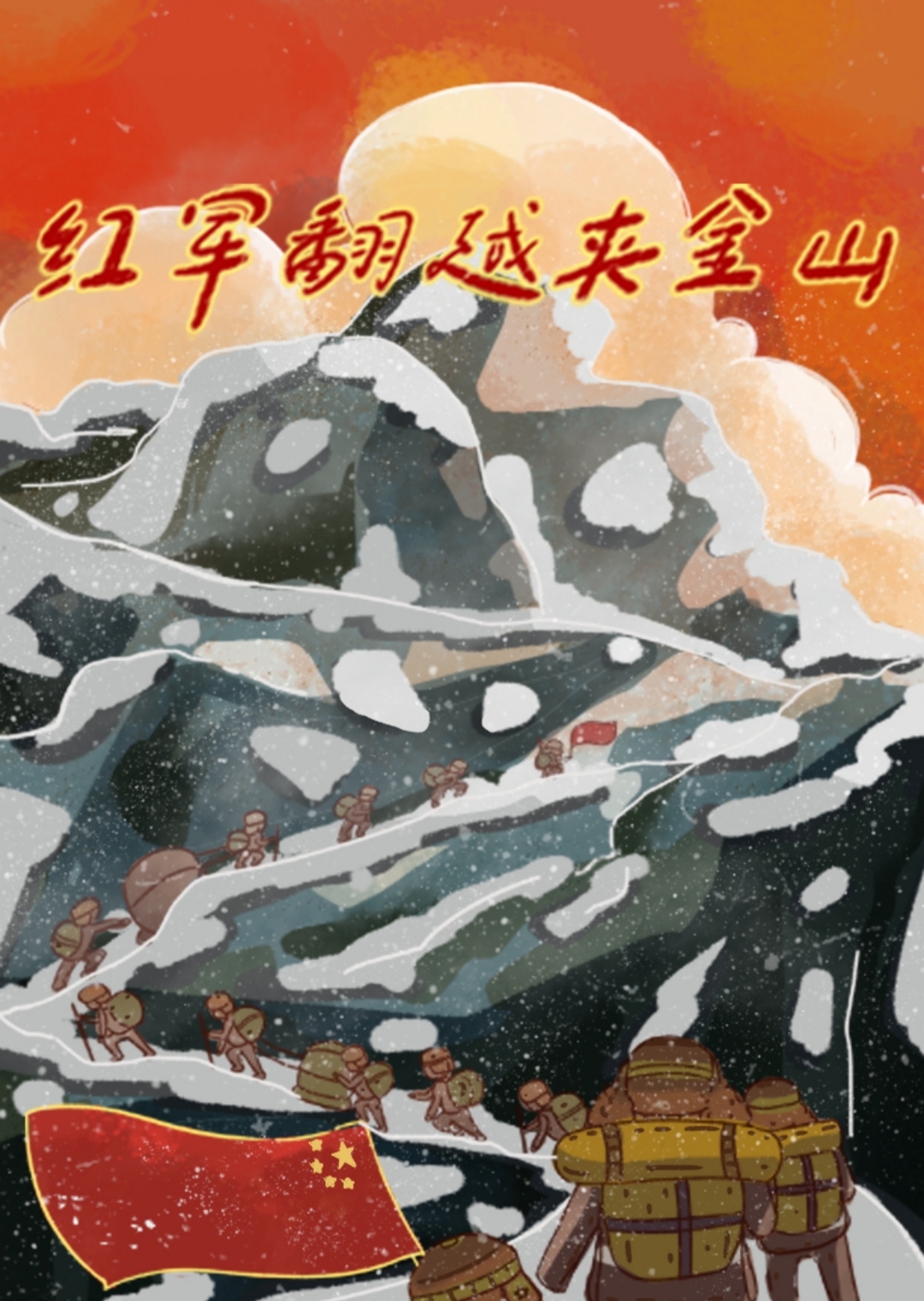 为给小朋友呈现出更好的课堂效果,活动开展前,团队成员对红军长征内容进行了系统全面的了解与学习,并选择了“翻越夹金山”这一环节进行原创绘本的创作,大大地提高小朋友的学习兴趣。