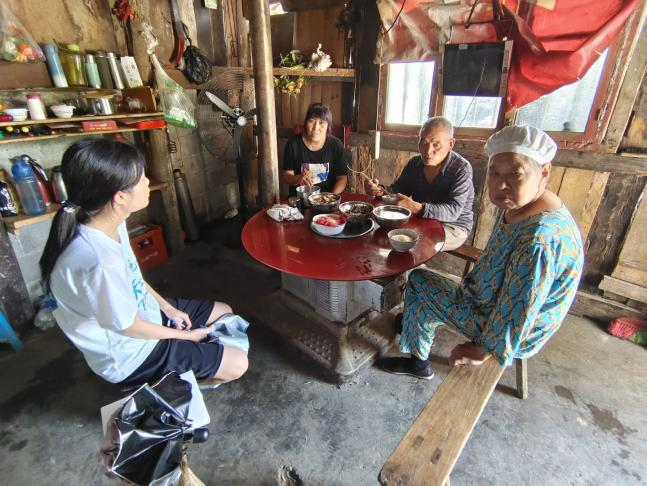 图为团队成员采访村民庞孝美 张茂芳/摄