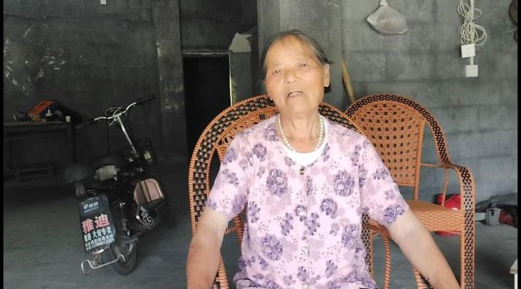 图为袁柳同学对村民陈奶奶的采访(周蕊摄)