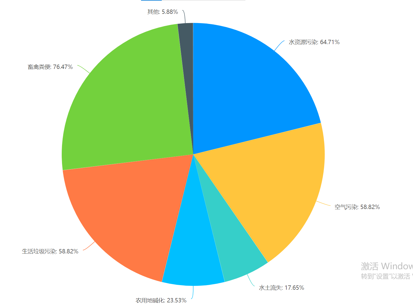 通过对回收问卷的分析团队成员了解到:80%在农村生活的村民认为自己居住的地方存在一定的环境问题包括但不限于水污染、垃圾随意倾倒、空气污染等;其中水污染和家禽粪便问题尤其突出,农村种植中不可避免使用到的农药成为水污染的难以解决的源头问题。