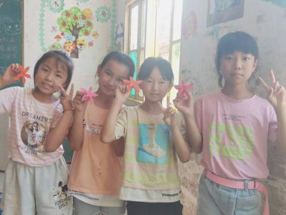 图为小孩子们正在展示他们手工作品 罗羚睿 供图