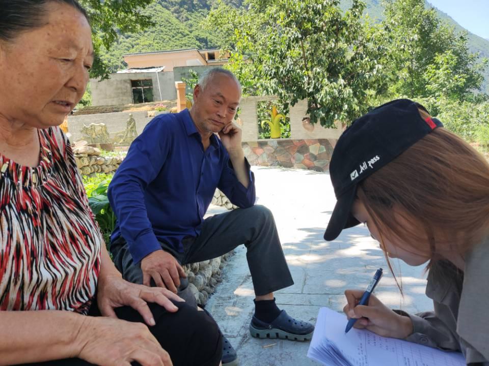 (图为启青计划小队向大录乡两位村干部了解情况)