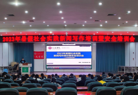据悉,此次培训会分别从宏观和微观的角度讲解了新闻稿的写作技巧以及相关安全知识,希望人文学子能在本次培训会议中受益匪浅,掌握更多、更精确的新闻写作技巧,在本次暑期社会实践活动中注意安全、提升自我。