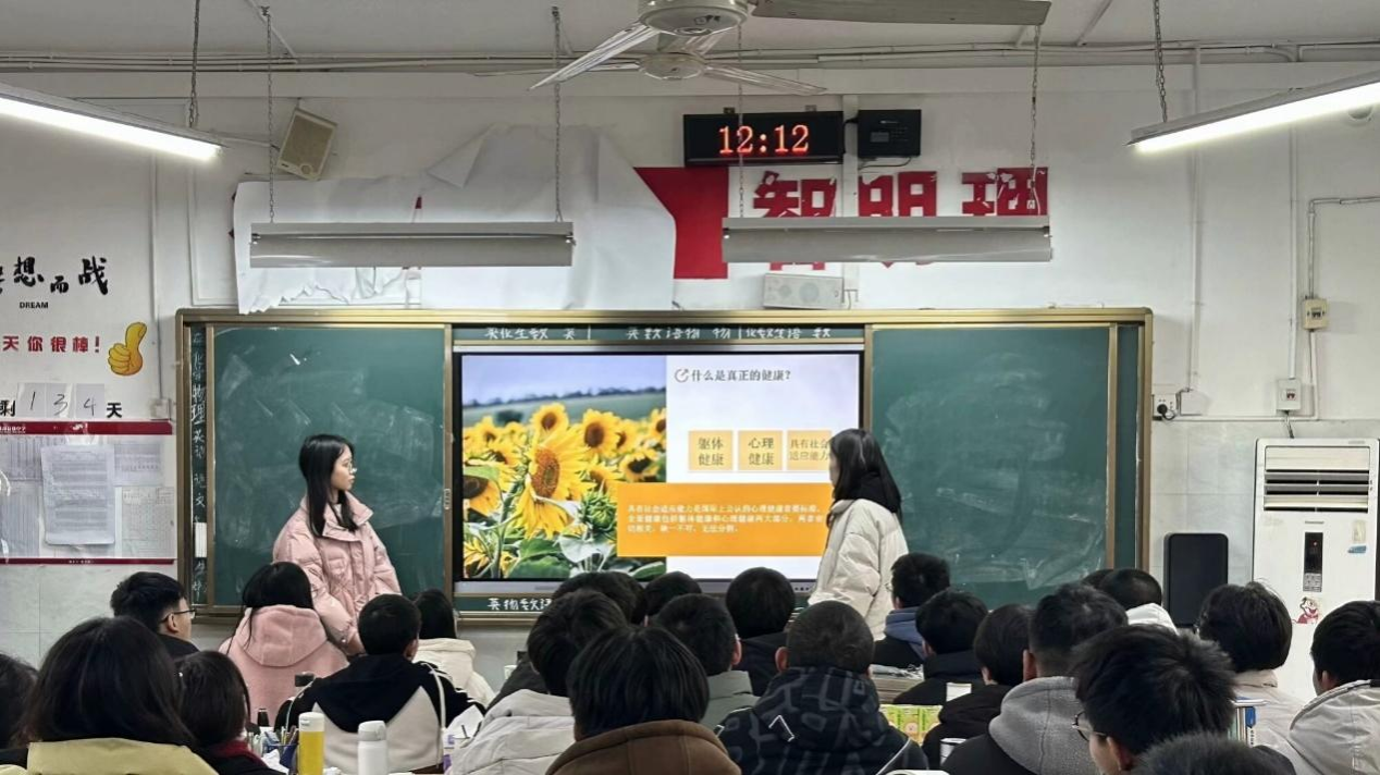 “向阳花·向阳而生”实践团队切实体会到高考带给学子们的压力,重点关注高三学子的心理状况,积极解决相关心理问题,于2月6日12:00在重庆市大足城南高级中学高三五班开展了以心理教育为主题的宣讲活动。本次实践活动旨在普及心理健康知识,帮助高三学子正确应对高考压力,保持阳光心态。