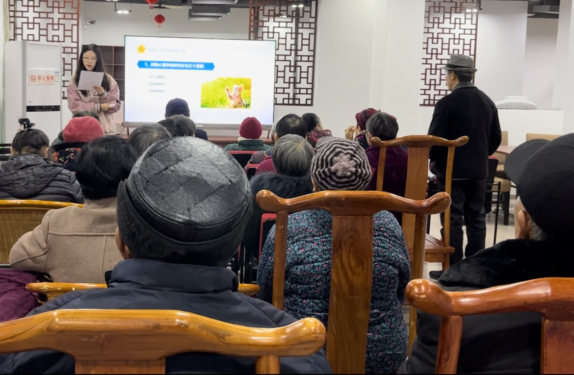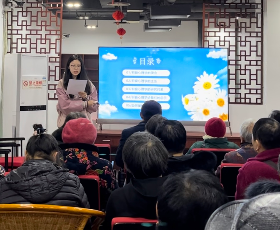 随着我国人口老龄化的进一步发展,社区独居老人的心理状况愈加得到社会关注。“向阳花·向阳而生”实践团队于2月16日9:00,在重庆市大渡口区西城家园社区“老吾老”社区活动室开展了以积极心理学为主题的宣讲活动。本次实践宣讲旨在向老年群体普及积极心理学知识,同时帮助独居老人树立正确心理,保持积极的生活态度。