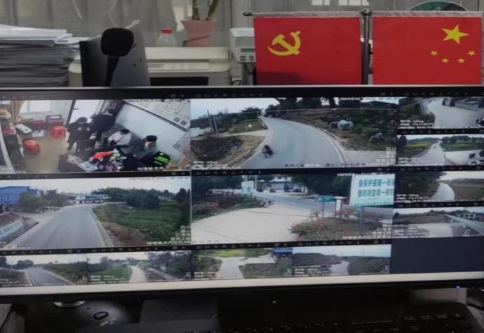 团队成员注意到办公室中的电脑上有实时监控录像。据了解,该监控路段岔路口多且村民多采取三轮车或摩托出行,因此在岔路口容易发生意外,办公室内的实时监控既可以迅速发现事故,也能够监督村民遵守交通规则。细节小事见真情,一言一行皆为民!