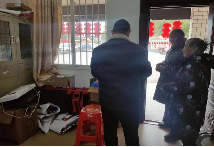 调研开始前,两位村民正在村干部办公室寻求帮助,村支书正耐心地为两位村民提供帮助。