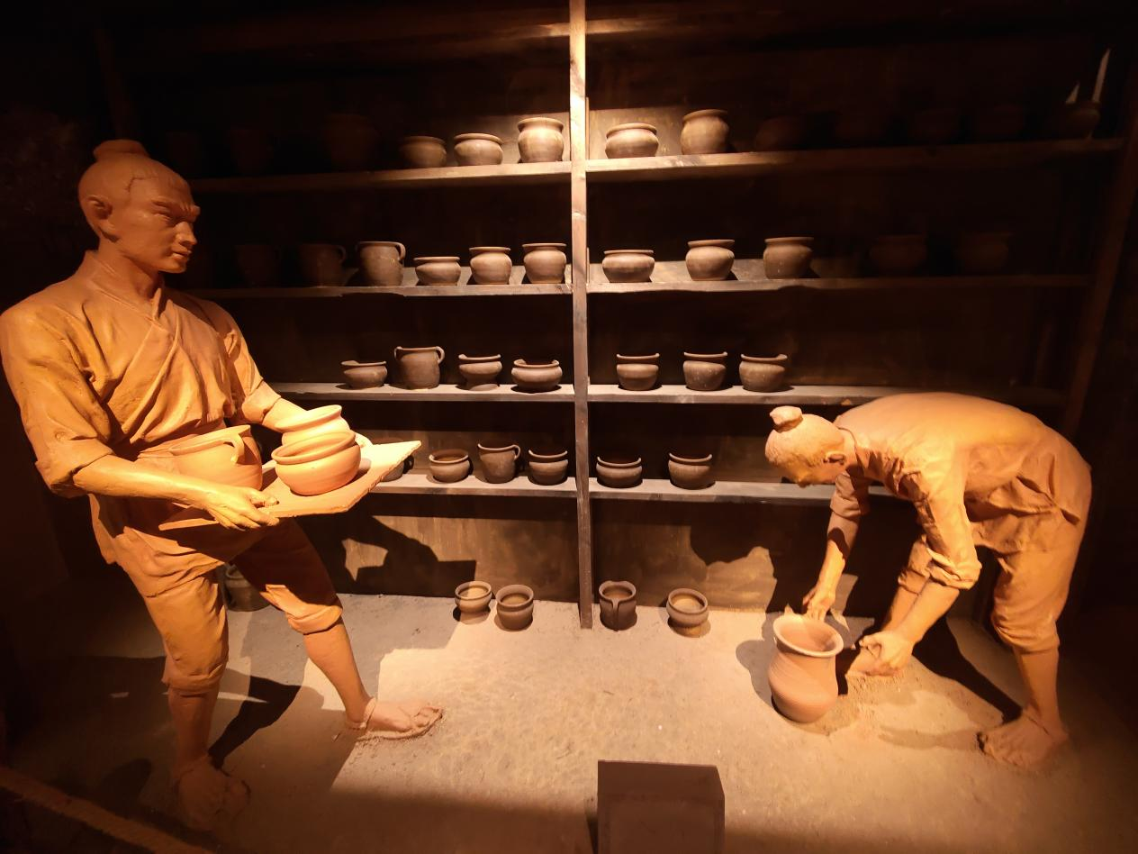 2月18日下午,团队成员到达荥经博物馆,该博物馆主要展出严道古城遗址出土的文物。荥经博物馆共有三层,分为四个展厅,内含文物跨越悠久历史。团队成员主要将目光聚焦在第四个展馆——以荥经砂器为主的非遗文化展馆。馆内游客零星,部分展物配备有语音讲解和放大镜,可以看出荥经黑砂得到了展馆较高的重视。荥经黑砂古色古香的烧制技艺,被展馆以展板、场景还原、多媒体等多种方式呈现。团队成员在展馆见证了黑砂器铸成的来龙去脉,深入体会了荥经黑砂的历史,同时得出了荥经黑砂“为什么好、好在哪里、为什么要坚守传承”的答案。