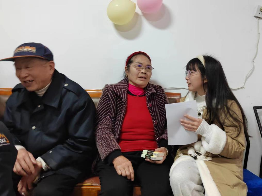 实践成员通过线上调查问卷及线下走访,对亲戚朋友以及路人进行心理健康相关话题的采访。实践成员于家乡当地社区对老年居民群体进行线下采访,内容涉及对老年生活的态度、满意度、压力等。老人们积极参与讨论,与实践队员们交流生活心得。